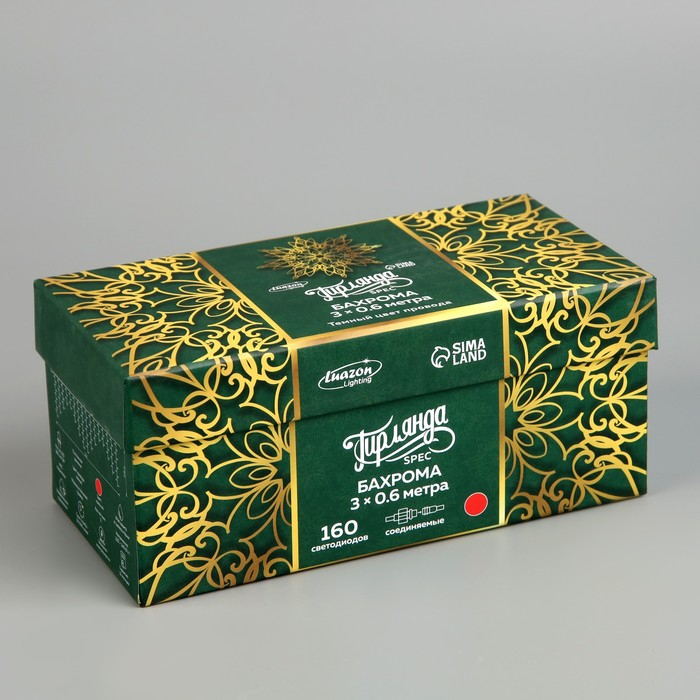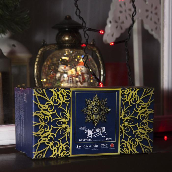 Гирлянда «Бахрома» 3 × 0.6 м, IP44, УМС, тёмная нить, 160 LED, свечение красное, 220 В