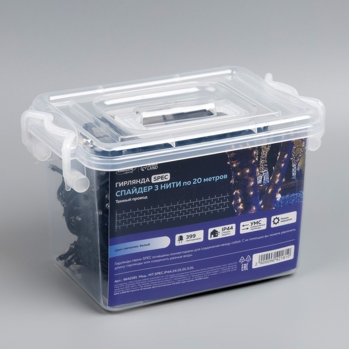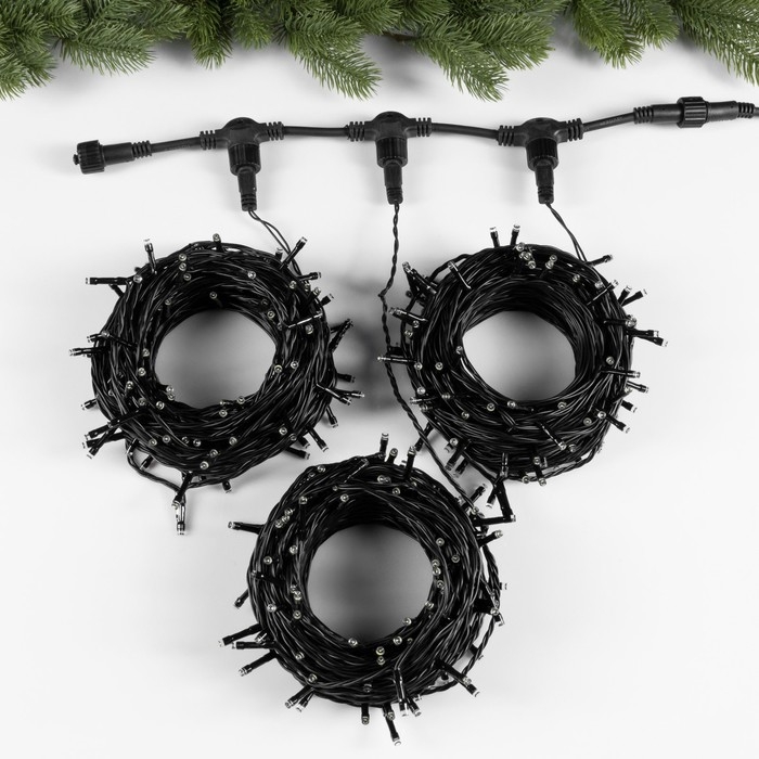 Гирлянда «Клип-лайт» 3 нити по 20 м, IP44, УМС, тёмная нить, 399 LED, свечение белое, мерцание, 24 В