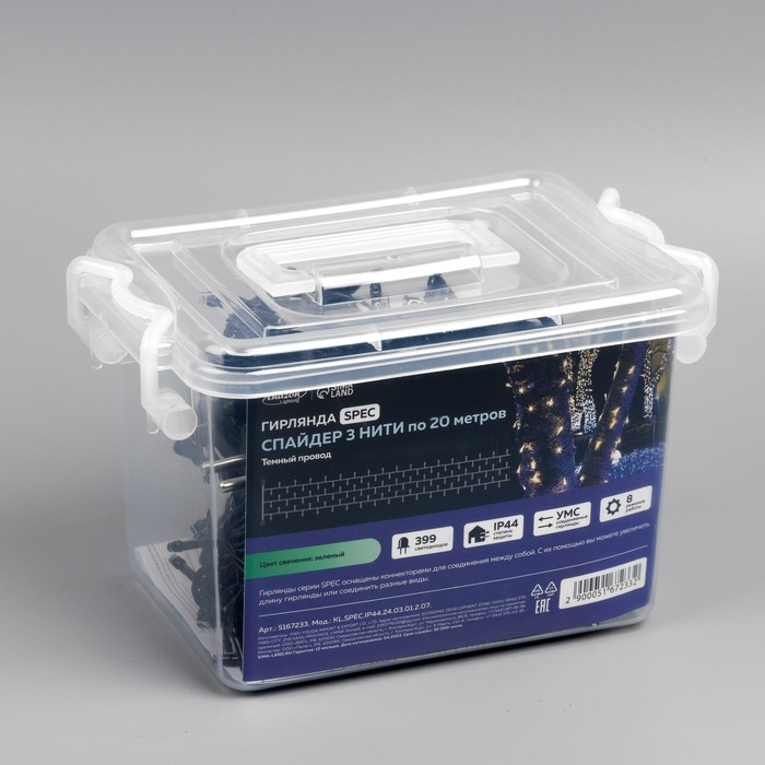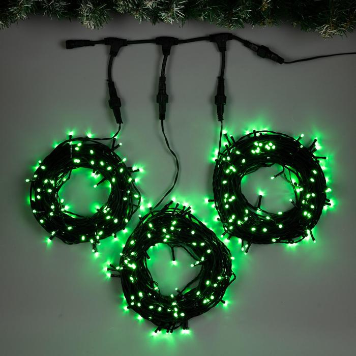 Гирлянда «Клип-лайт» 3 нити по 20 м, IP44, УМС, тёмная нить, 399 LED, свечение зелёное, 8 режимов, 24 В