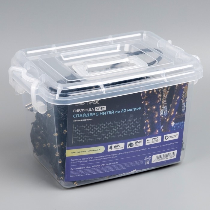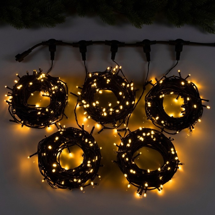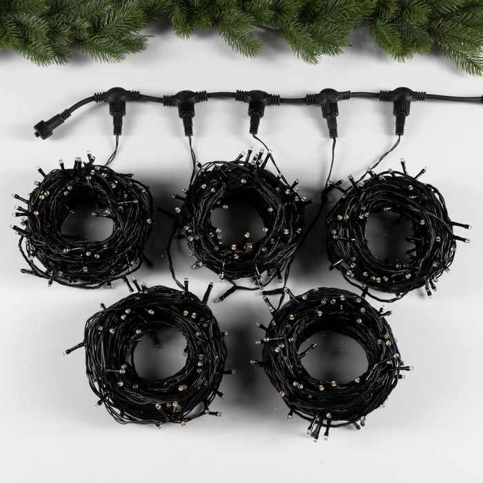 Гирлянда «Клип-лайт» 5 нитей по 20 м, IP44, УМС, тёмная нить, 665 LED, свечение тёплое белое, мерцание всех светодиодов, 24 В