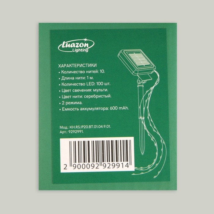 Гирлянда «Конский хвост» 10 нитей по 1 м, серебристая нить, 100 LED, свечение мульти, 2 режима, солнечная батарея