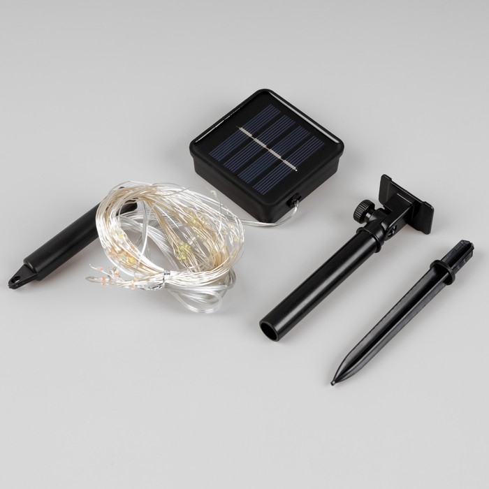 Гирлянда «Нить» 10 м, IP44, тёмная нить, 100 LED, свечение мульти, 2 режима, солнечная батарея