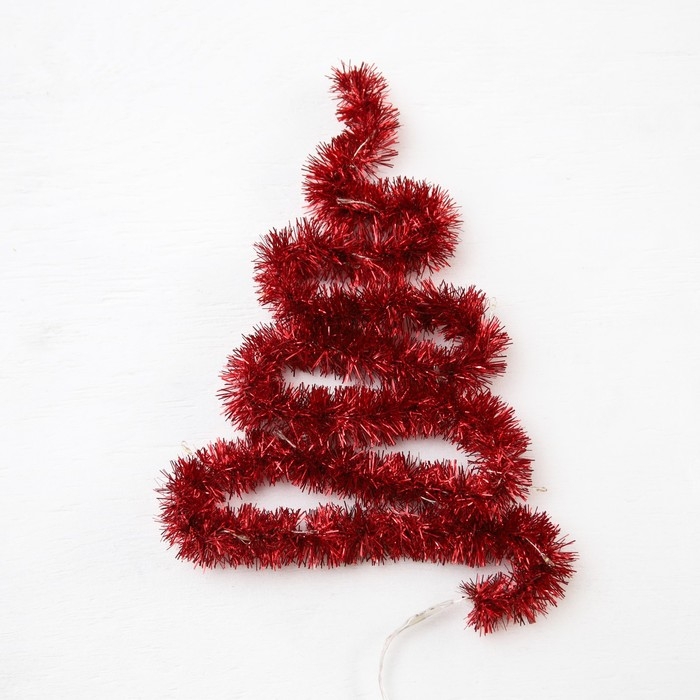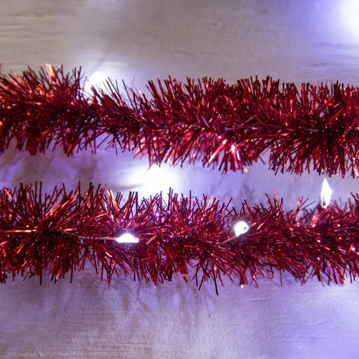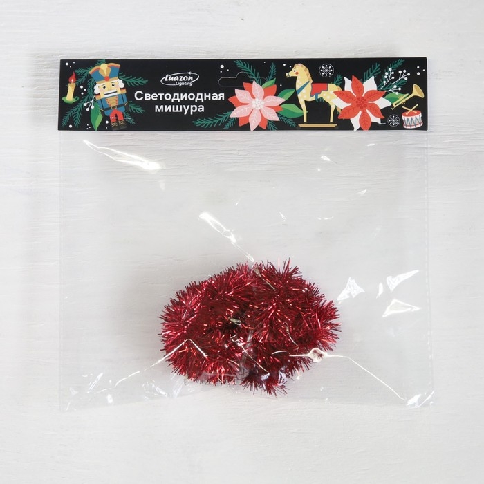Гирлянда «Мишура» 1 м роса, IP20, красная нить, 22 LED, 8 слоёв, d=3 см,батарейки CR2032х2 (в комплекте), свечение белое