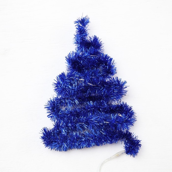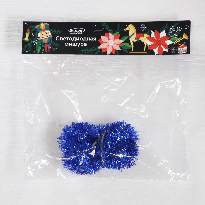 Гирлянда «Мишура» 1 м роса, IP20, синяя нить, 22 LED, 8 слоёв, d=3 см, батарейки CR2032х2 (в комплекте), свечение белое