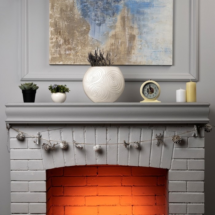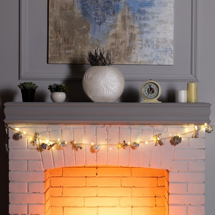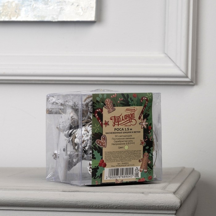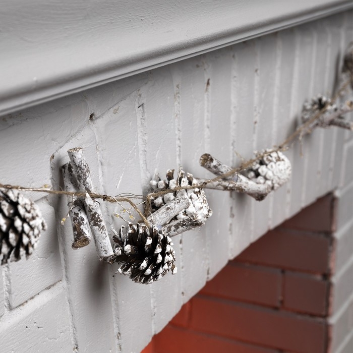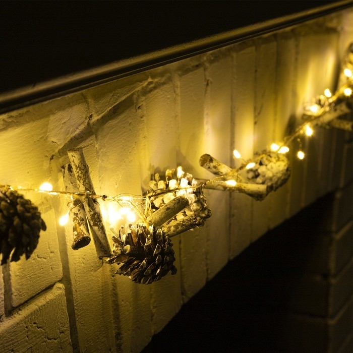 Гирлянда «Нить» 1.5 м роса с насадками «Шишки и ветки», IP20, серебристая нить, 30 LED, батарейки CR2032х2 (в комплекте), свечение тёплое белое
