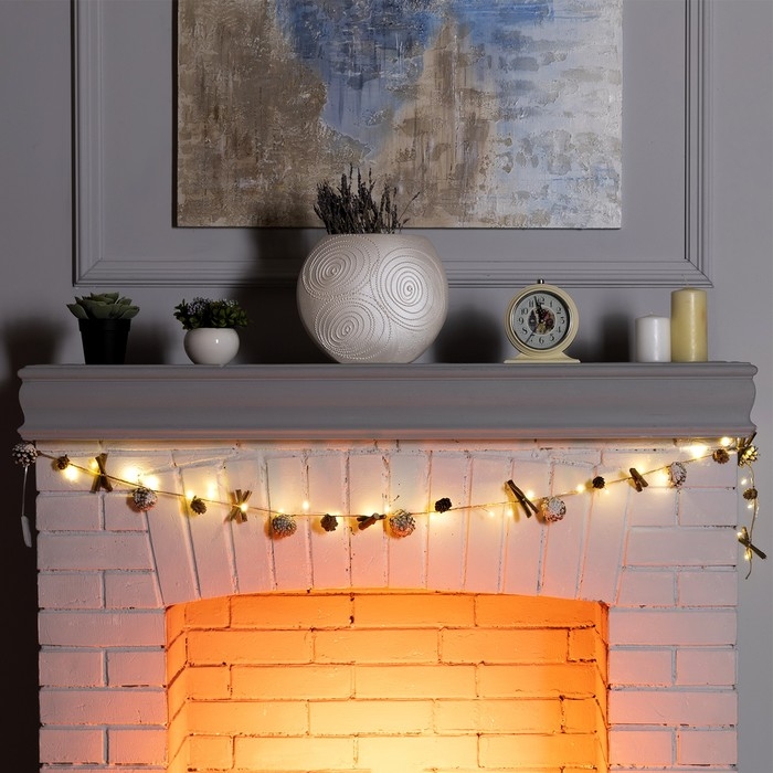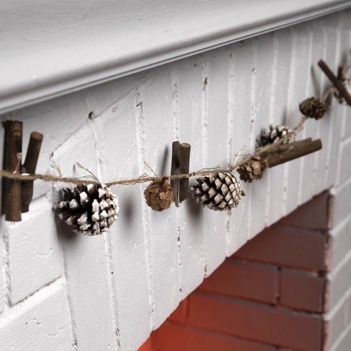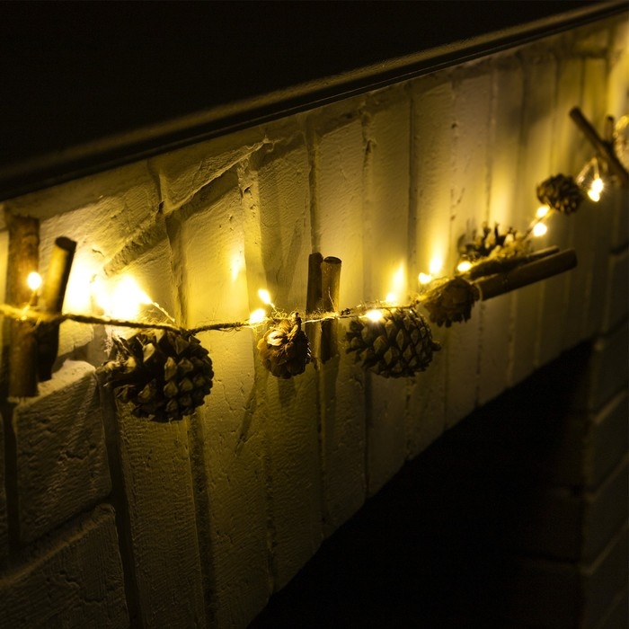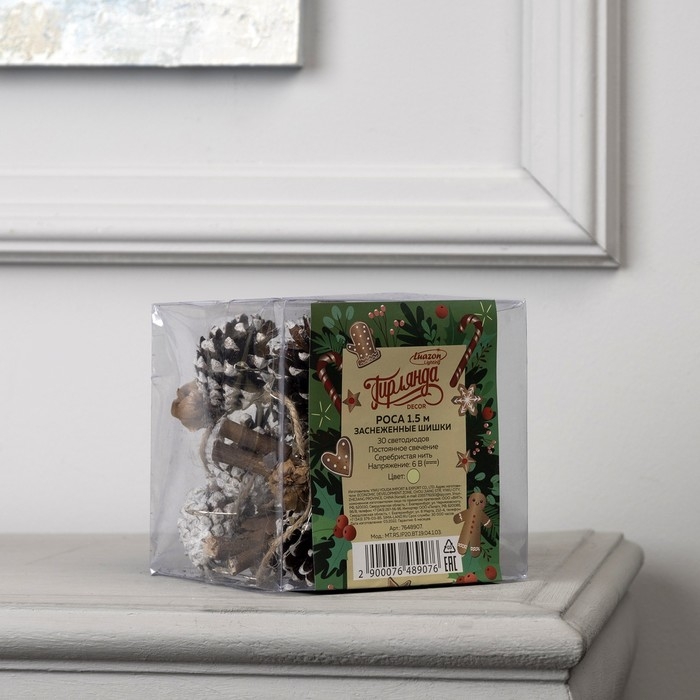 Гирлянда «Нить» 1.5 м роса с насадками «Заснеженные шишки», IP20, серебристая нить, 30 LED, батарейки CR2032х2 (в комплекте), свечение тёплое белое