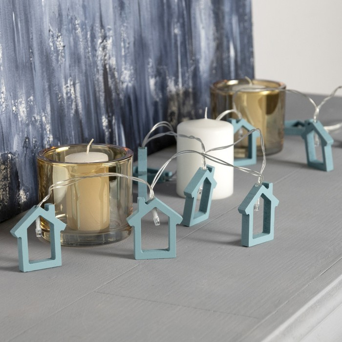 Гирлянда «Нить» 1.5 м с насадками «Дом синий», IP20, прозрачная нить, 10 LED, батарейки AAх2 (нет в комплекте), свечение тёплое белое