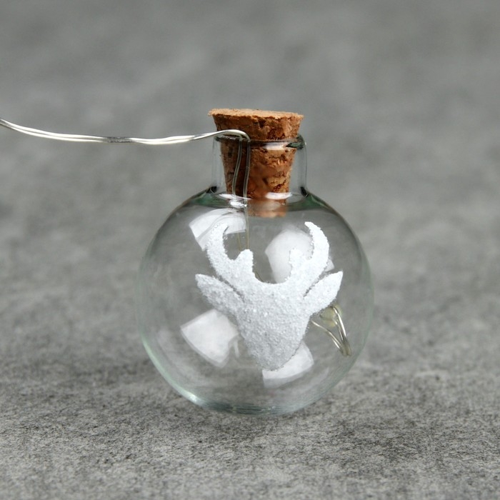 Гирлянда «Нить» 1.6 м с насадками «Шарики с оленем», IP20, серебристая нить, 15 LED, свечение тёплое белое, ААх2