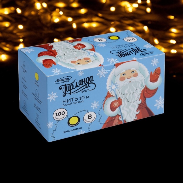 Гирлянда «Нить» 10 м, IP20, белая нить, 100 LED, свечение жёлтое, 8 режимов, 220 В