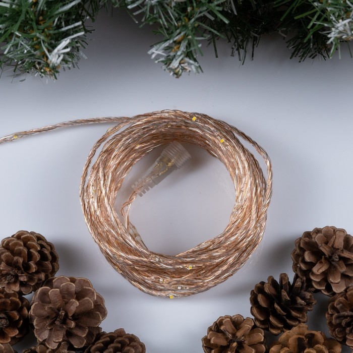 Гирлянда «Нить» 10 м роса, IP44, медная нить, 100 LED, свечение тёплое белое, мерцание, 220 В