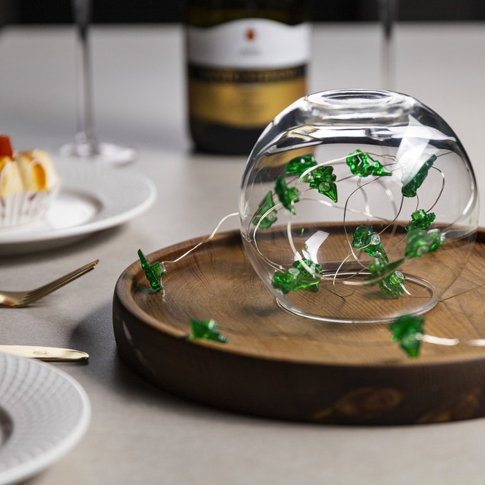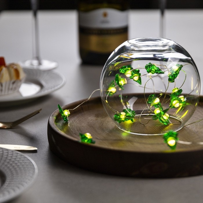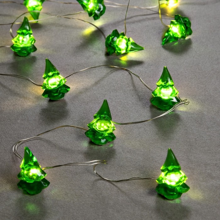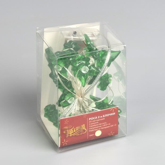 Гирлянда «Нить» 2 м роса с насадками «Ёлочка», IP20, серебристая нить, 20 LED, 2 режима, батарейки ААх2 (нет в комплекте), свечение тёплое белое