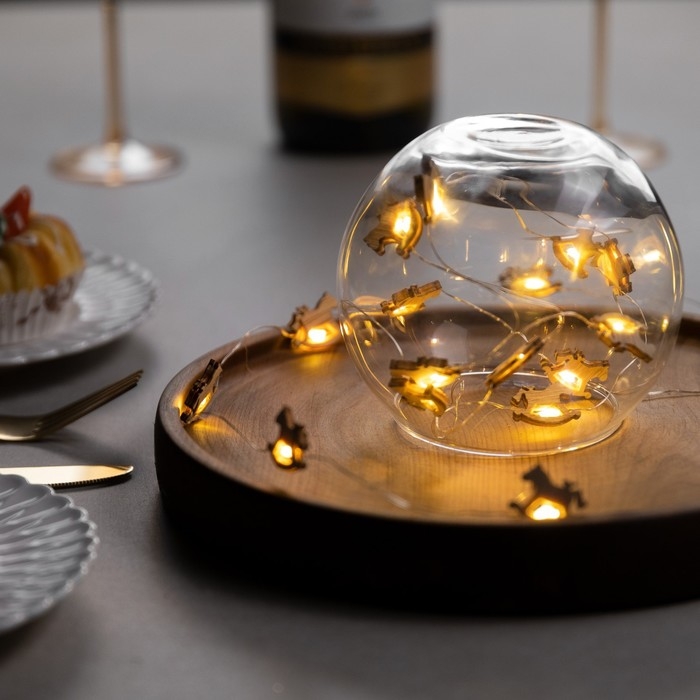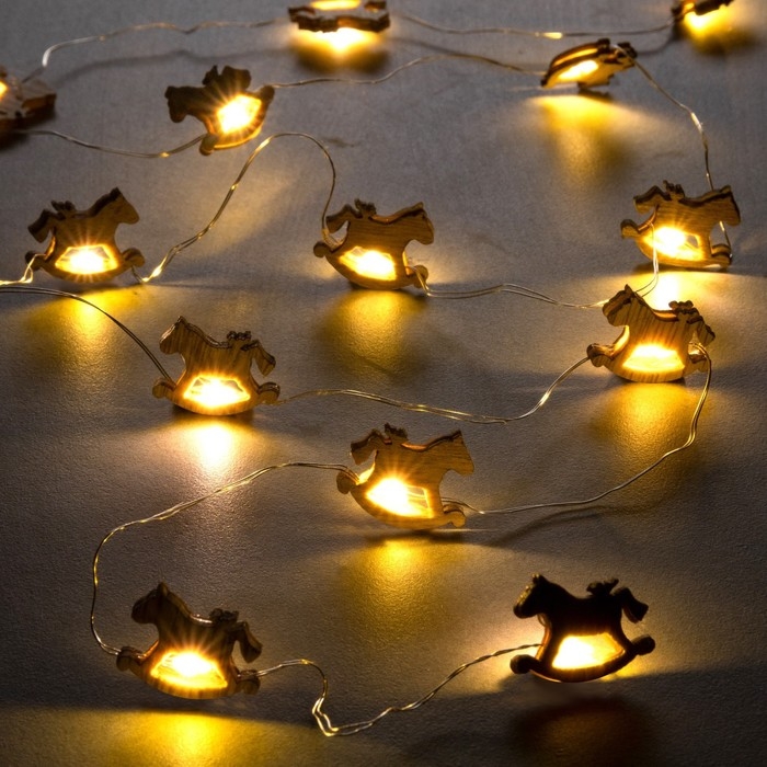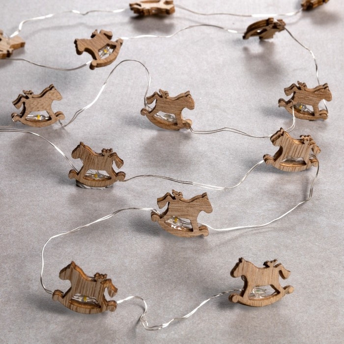 Гирлянда «Нить» 2 м роса с насадками «Лошадка», IP20, серебристая нить, 20 LED, батарейки ААх2 (нет в комплекте), свечение тёплое белое