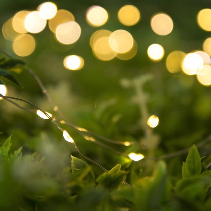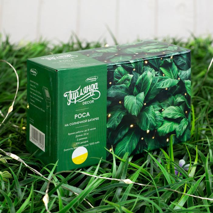 Гирлянда «Нить» 20 м роса, IP44, серебристая нить, 200 LED, свечение тёплое белое, 2 режима, солнечная батарея