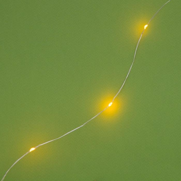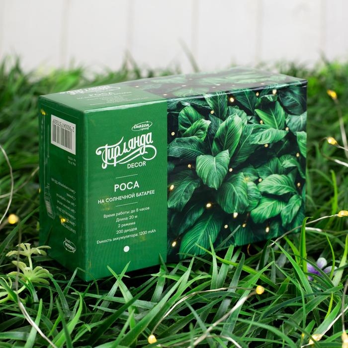 Гирлянда «Нить» 20 м роса, IP44, серебристая нить, 200 LED, свечение жёлтое, 2 режима, солнечная батарея