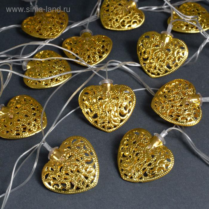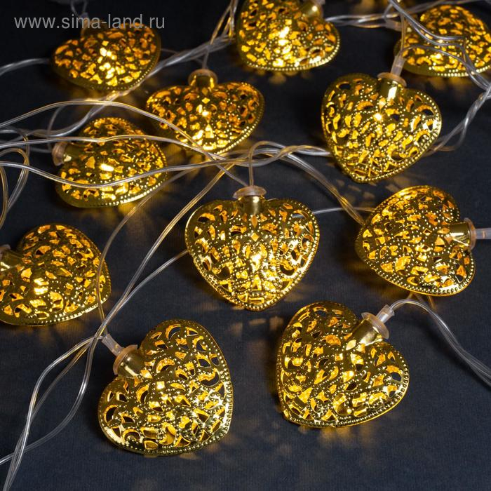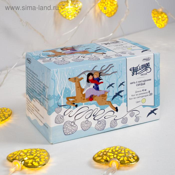 Гирлянда «Нить» 4 м с насадками «Сердце», IP20, прозрачная нить, 20 LED, свечение тёплое белое, 8 режимов, 220 В