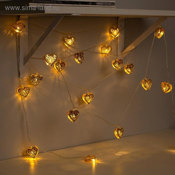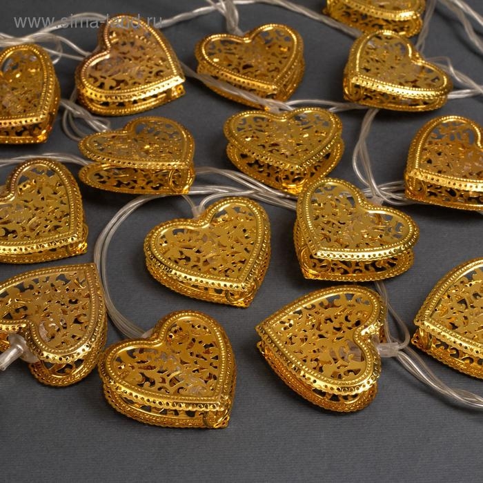 Гирлянда «Нить» 4 м с насадками «Сердечко», IP20, прозрачная нить, 20 LED, свечение тёплое белое, 8 режимов, 220 В