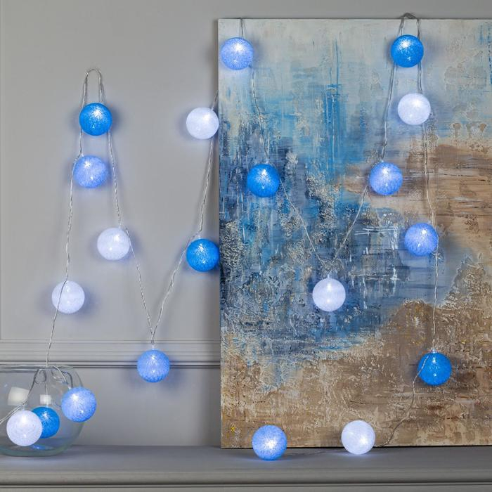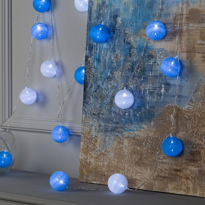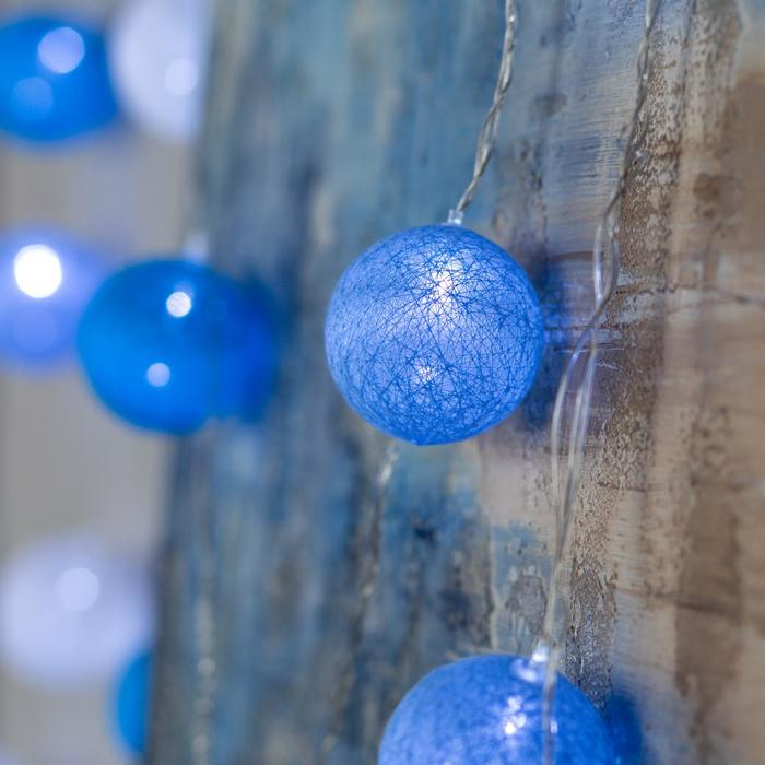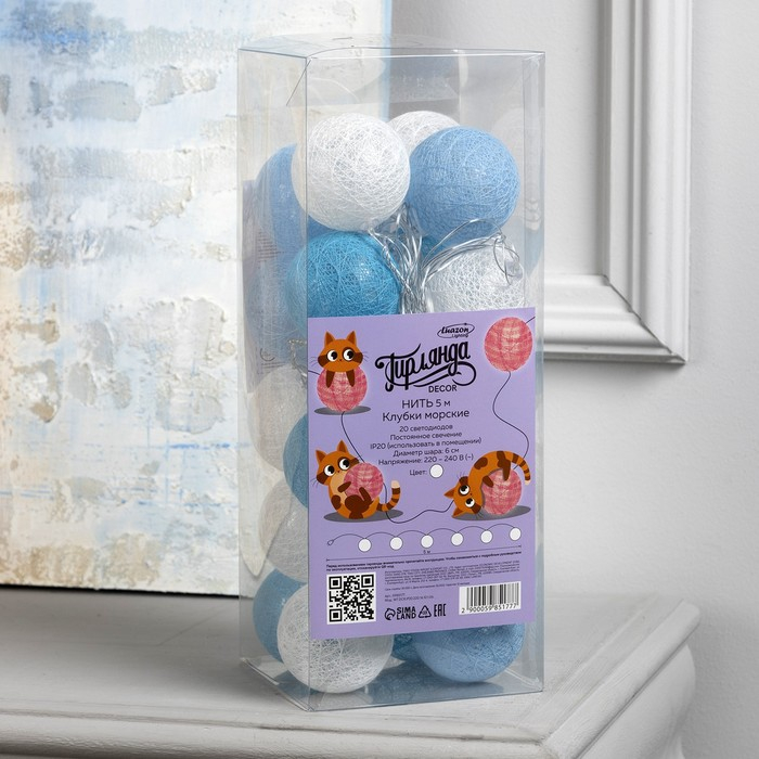 Гирлянда «Нить» 5 м с насадками «Клубки морские», IP20, прозрачная нить, 20 LED, свечение белое, 220 В