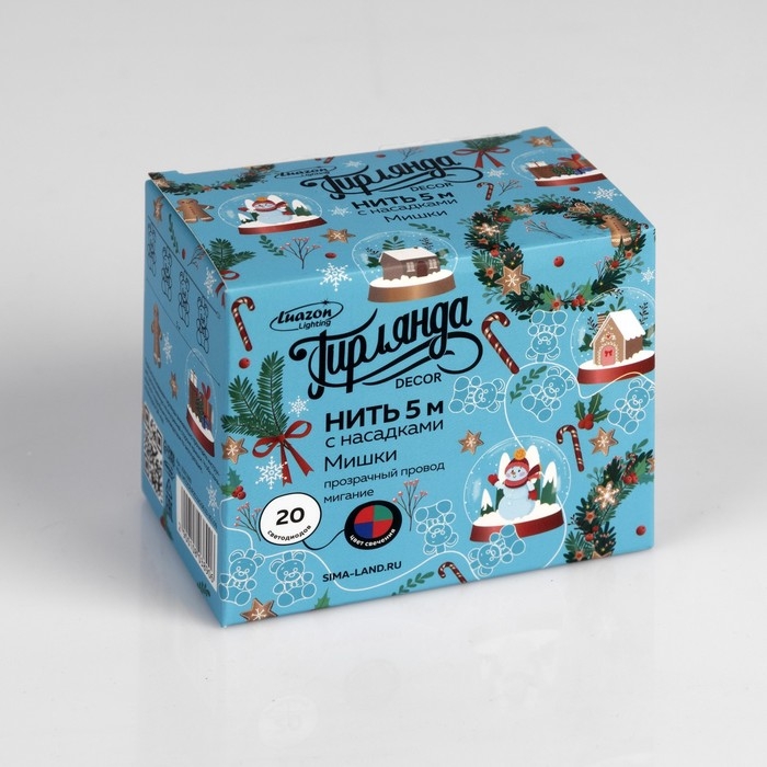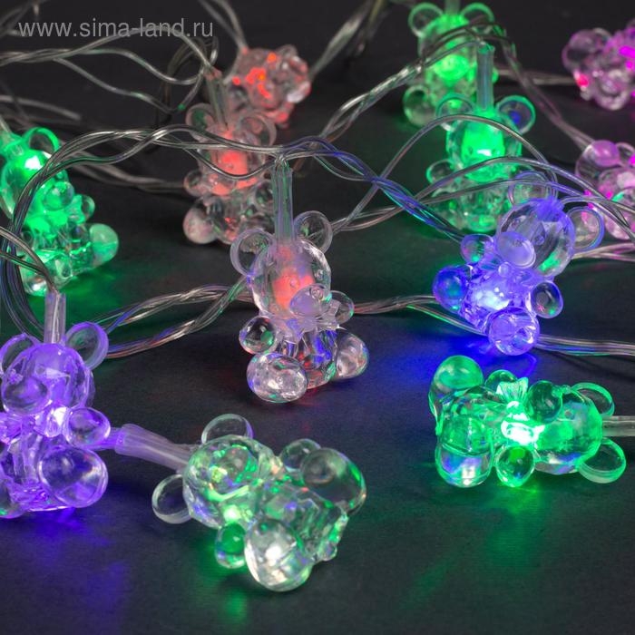 Гирлянда «Нить» 5 м с насадками «Мишки», IP20, прозрачная нить, 20 LED, свечение мульти (RG/RB), мигание, 220 В