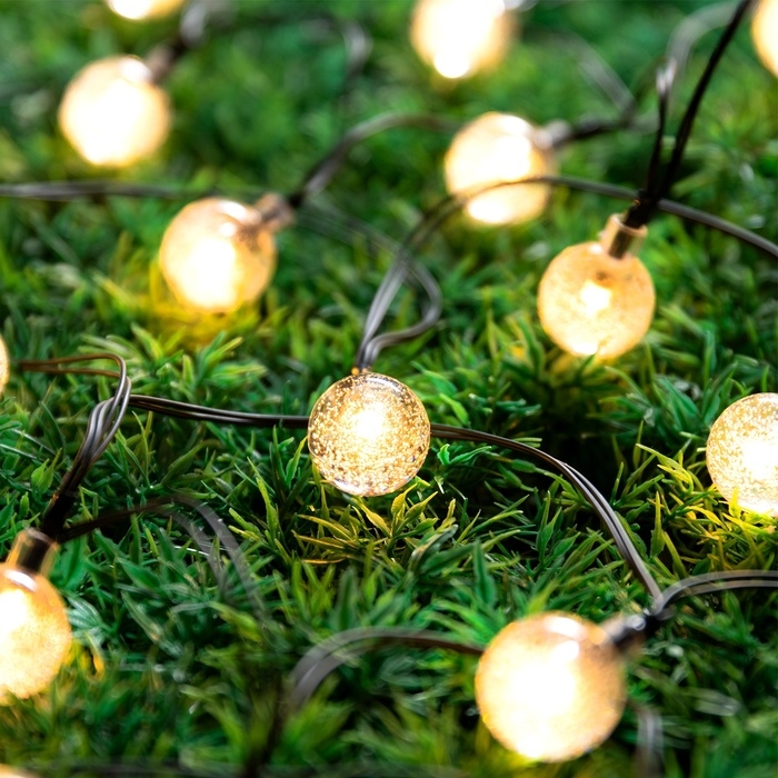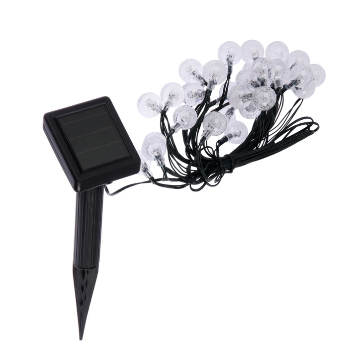 Гирлянда «Нить» 4.5 м с насадками «Шарики», IP44, тёмная нить, 30 LED, свечение белое, 2 режима, солнечная батарея