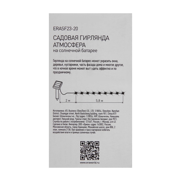 Гирлянда садовая Эра на солнечной батарее «Атмосфера»