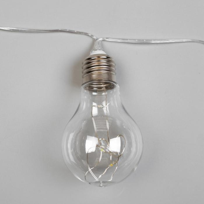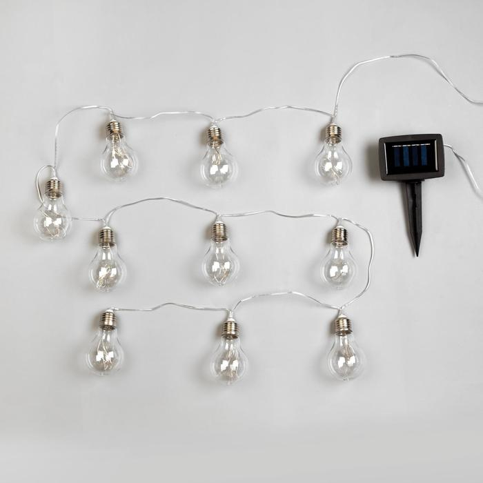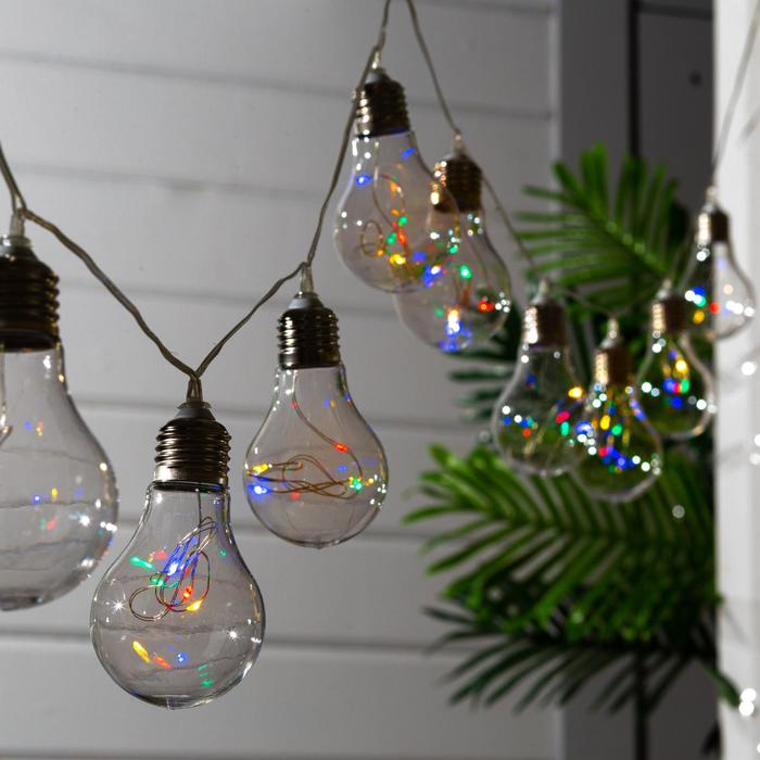 Гирлянда Uniel «Нить» 1.9 м с насадками «Лампочки», IP44, прозрачная нить, 10 лампочек, свечение мульти, 1 режим, солнечная батарея