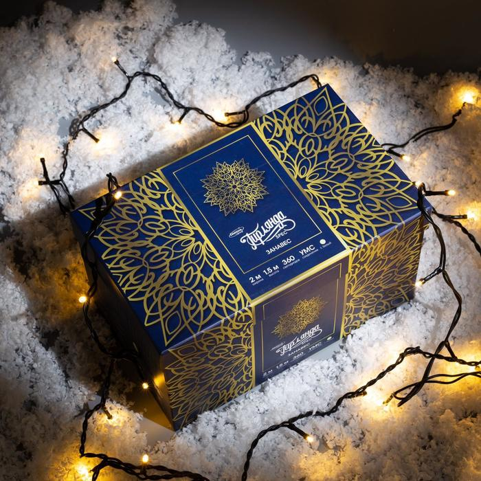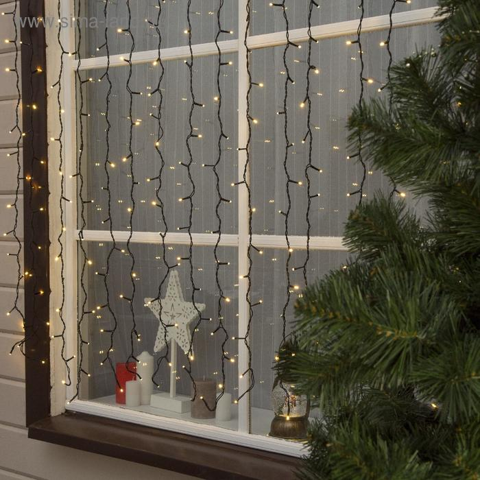 Гирлянда «Занавес» 2 × 1.5 м, IP44, УМС, тёмная нить, 360 LED, свечение тёплое белое, 220 В