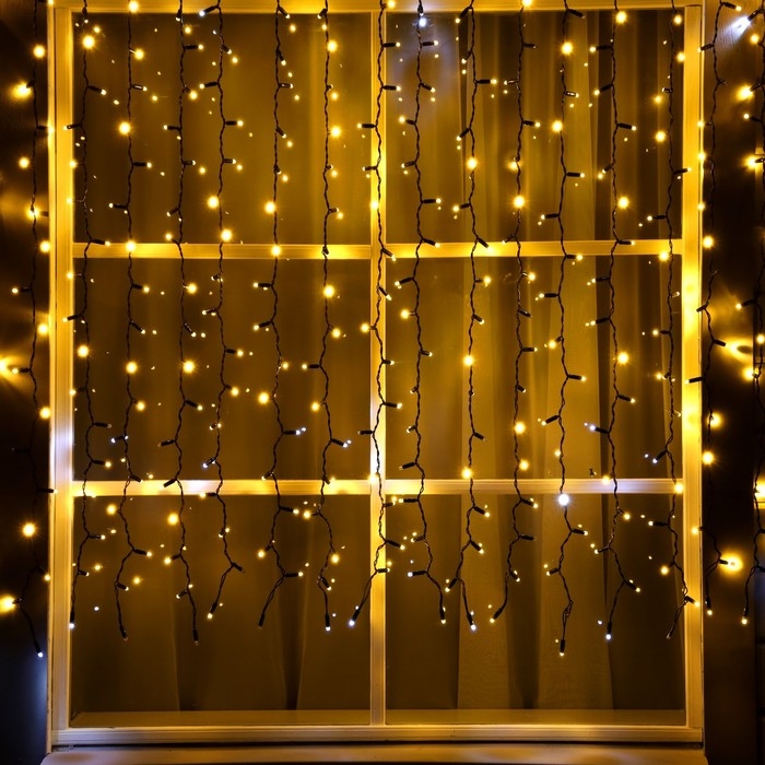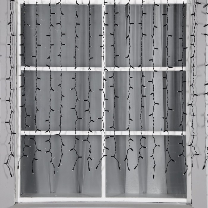 Гирлянда «Занавес» 2 × 1.5 м, IP65, УМС, тёмная нить, 360 LED, свечение тёплое белое, мерцание белым, 220 В