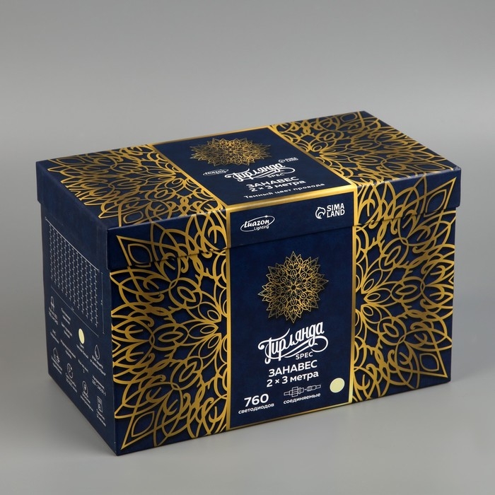 Гирлянда «Занавес» 2 × 3 м, IP44, УМС, тёмная нить, 760 SMD-LED, свечение тёплое белое, 220 В