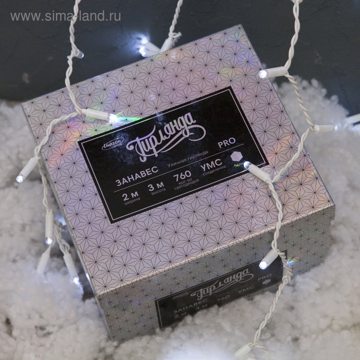 Гирлянда «Занавес» 2 × 3 м, IP65, УМС, белая нить, 760 LED, свечение белое, 220 В