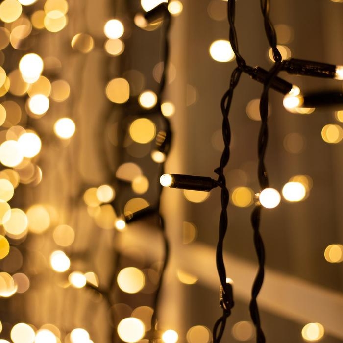 Гирлянда «Занавес» 2 × 6 м, IP65, УМС, тёмная нить, 1440 LED, свечение тёплое белое, 220 В