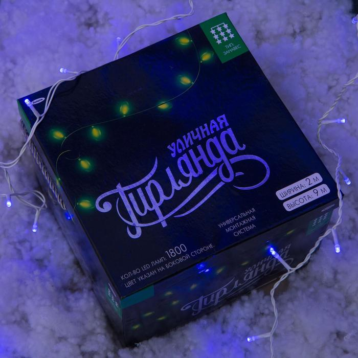 Гирлянда «Занавес» 2 × 9 м, IP44, УМС, белая нить, 1800 LED, свечение синее, 220 В