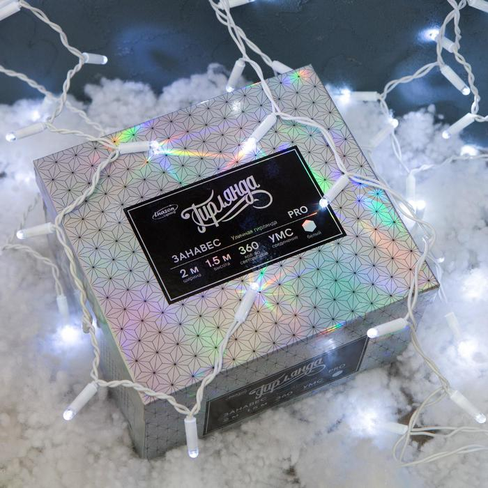 Гирлянда «Занавес» 2 х 1.5 м, IP65, УМС, белая нить, 360 LED, свечение белое, мерцание белым, 220 В