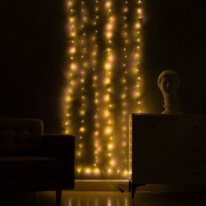 Гирлянда «Звёздное небо» 1 × 5 м роса, IP44, УМС, серебристая нить, 300 LED, свечение тёплое белое