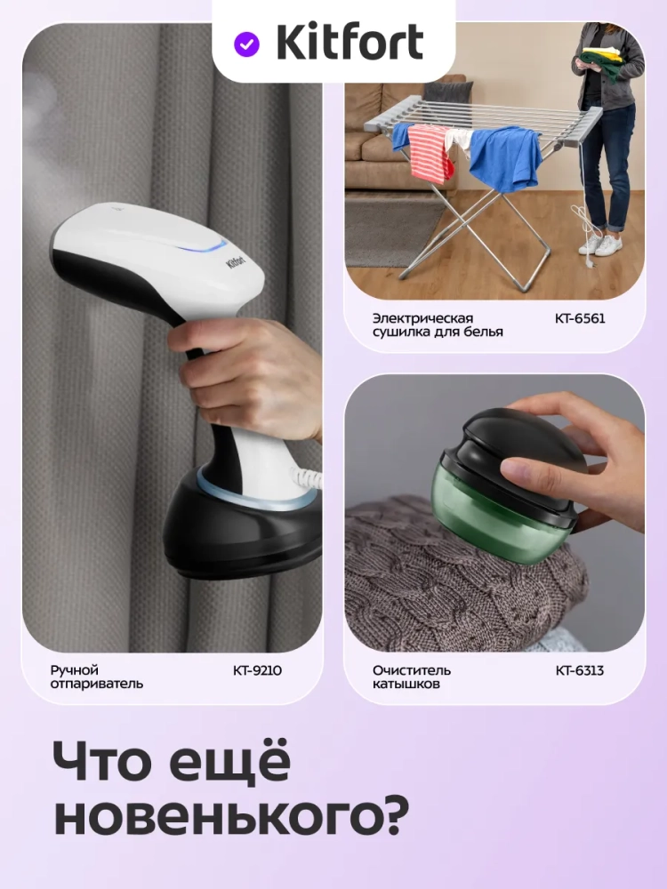 Гладильная система «3 в 1» Kitfort КТ-9368 — это современное устройство для глажки, совмещающее в себе утюг, отпариватель и гладильную доску.