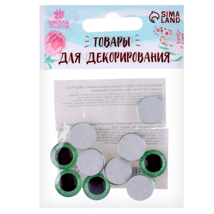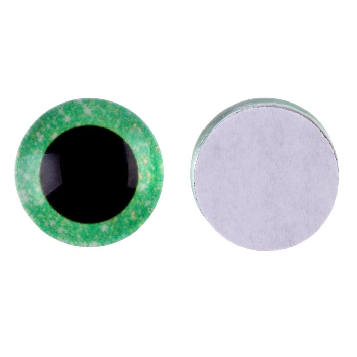 Глаза на клеевой основе, набор 10 шт., размер 1 шт. — 15 мм, цвет зелёный с блёстками