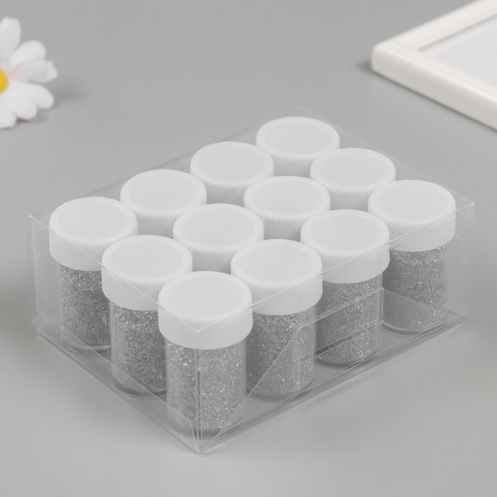 Глиттер размер 1/96, упаковка 12 шт/10 гр, серебро