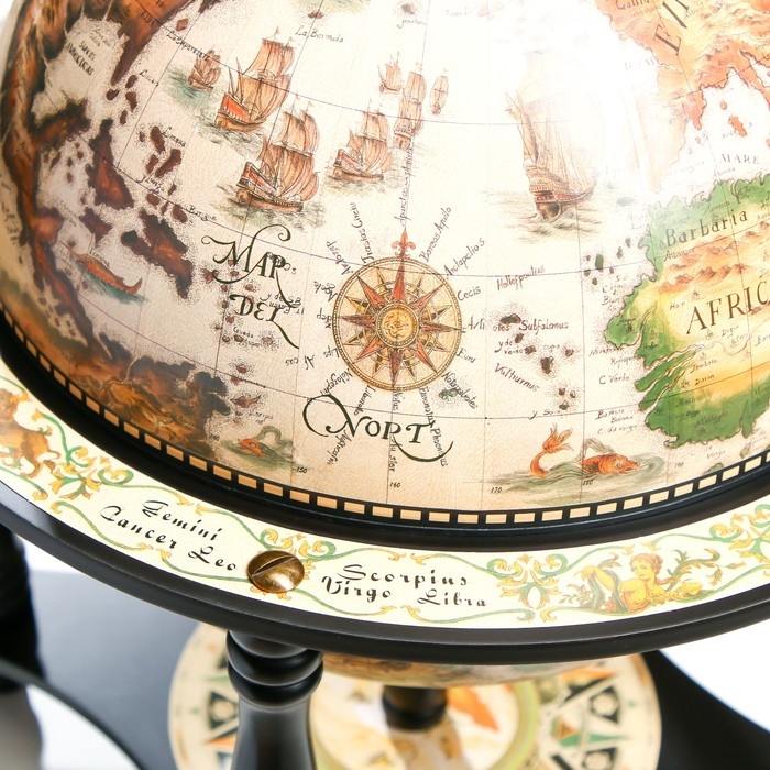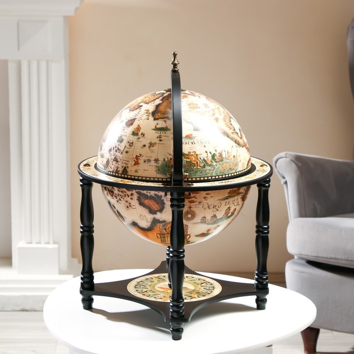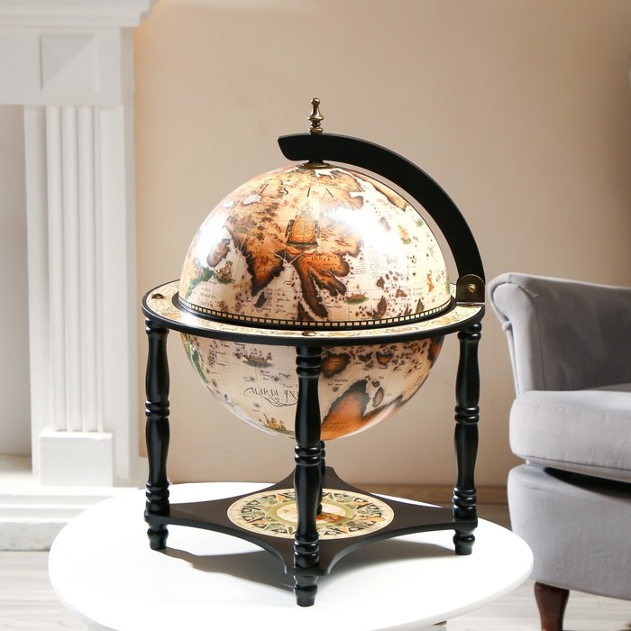 Глобус бар декоративный "Карта странника" с подставкой внизу 41,6х41,6х56 см