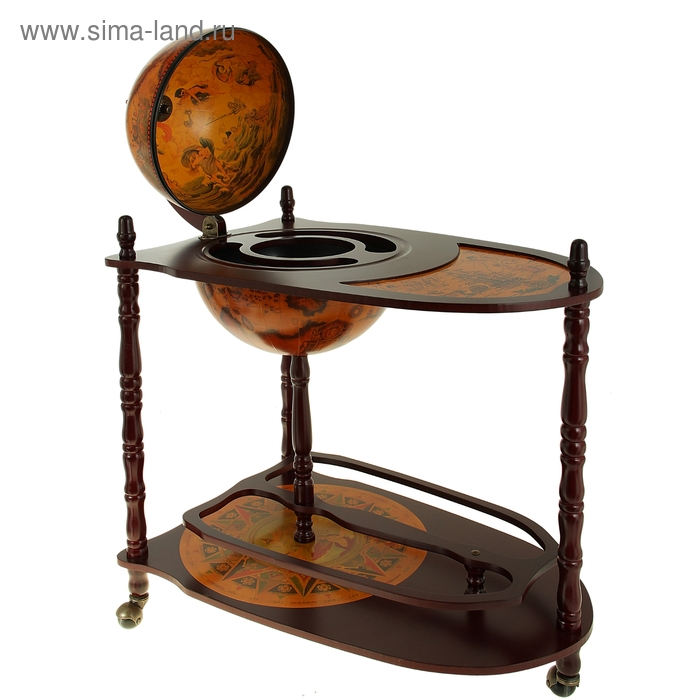 Глобус-бар декоративный, напольный, с двойными полочками 87х69х44 см