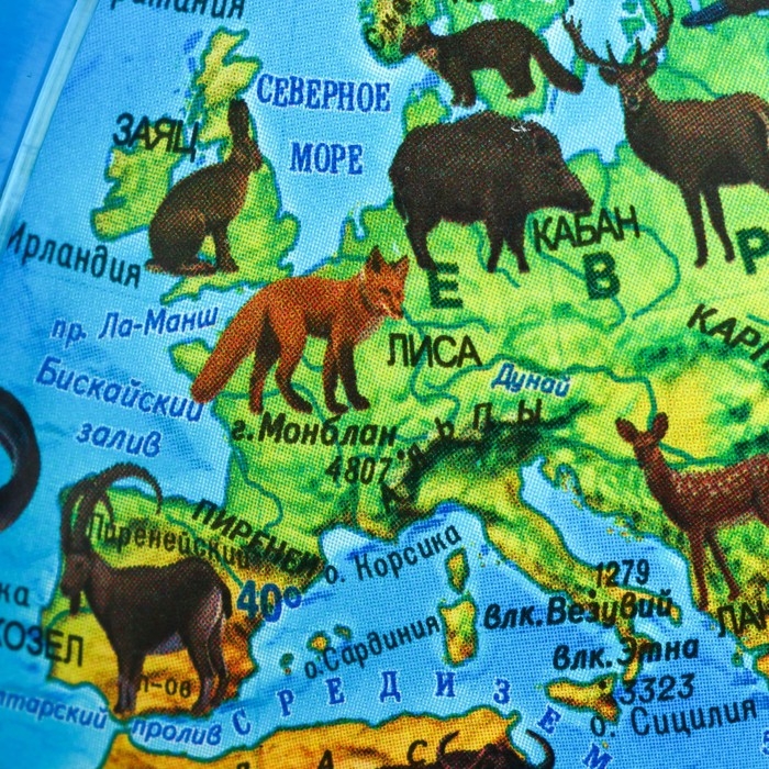 - Удобство. Глобус работает от двух пальчиковых батареек и снабжен простым, знакомым даже малышу, переключателем. Поменять использованные батарейки так же легко, как лампочку в глобусах с подсветкой от сети.