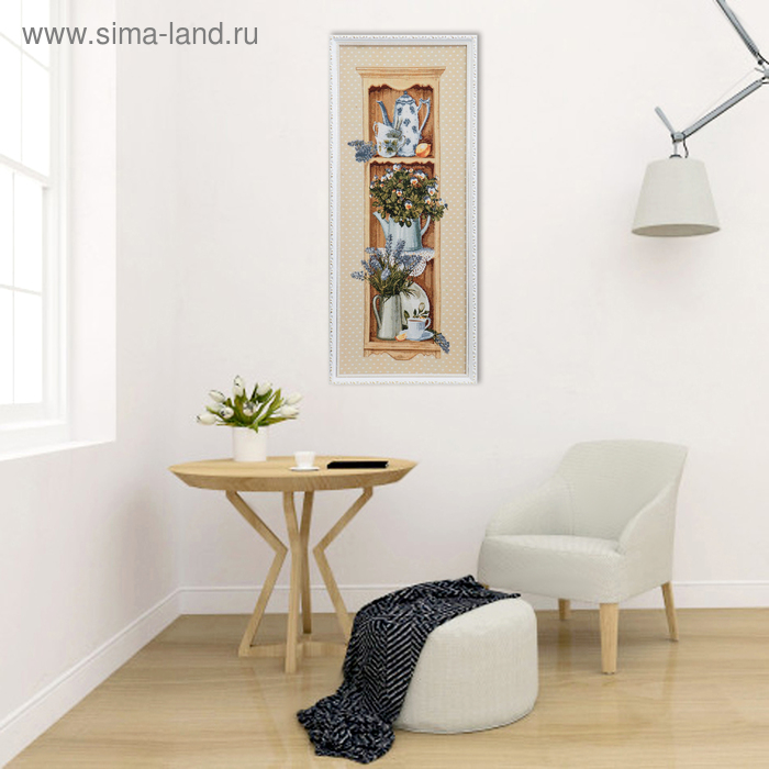 Гобеленовая картина "Дачная этажерка с лавандой" 38*90 рамка микс