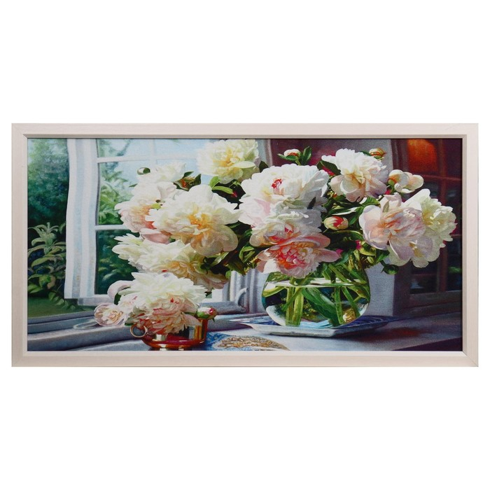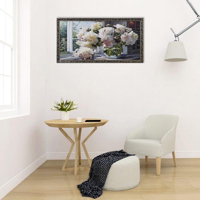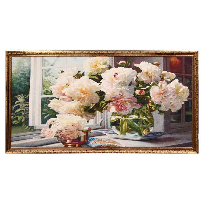 Гобеленовая картина "Георгины на окне" 63*123 см рамка МИКС