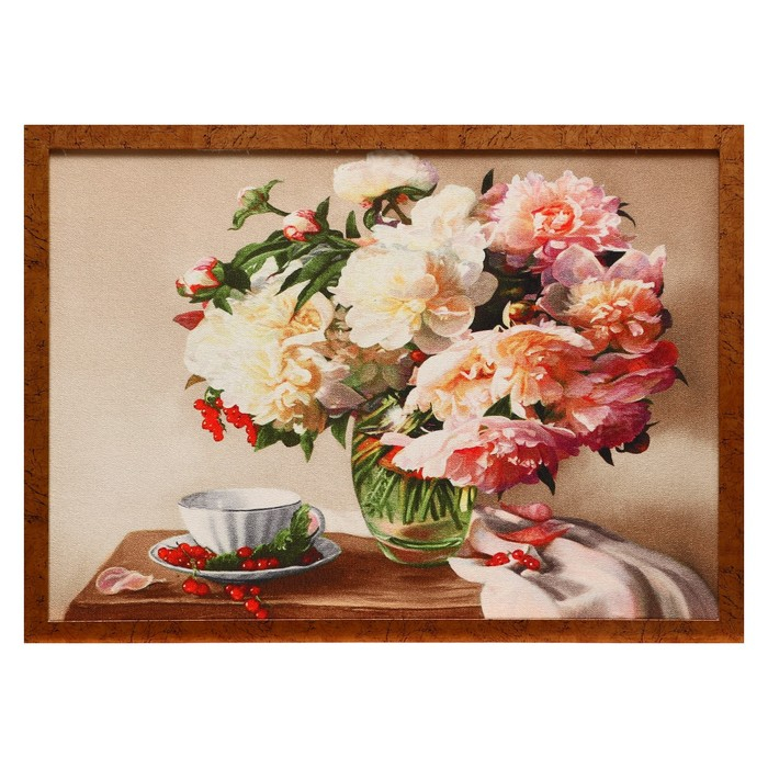 Гобеленовая картина "Пионы в вазе " 53*73 см рамка микс
