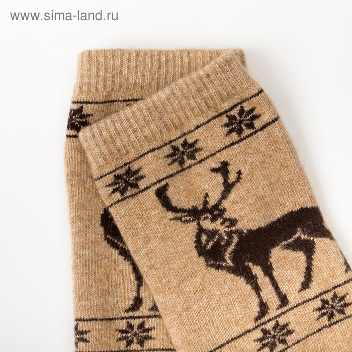 Гольфы женские из монгольской шерсти с рисунком, цвет бежевый, размер 23-25