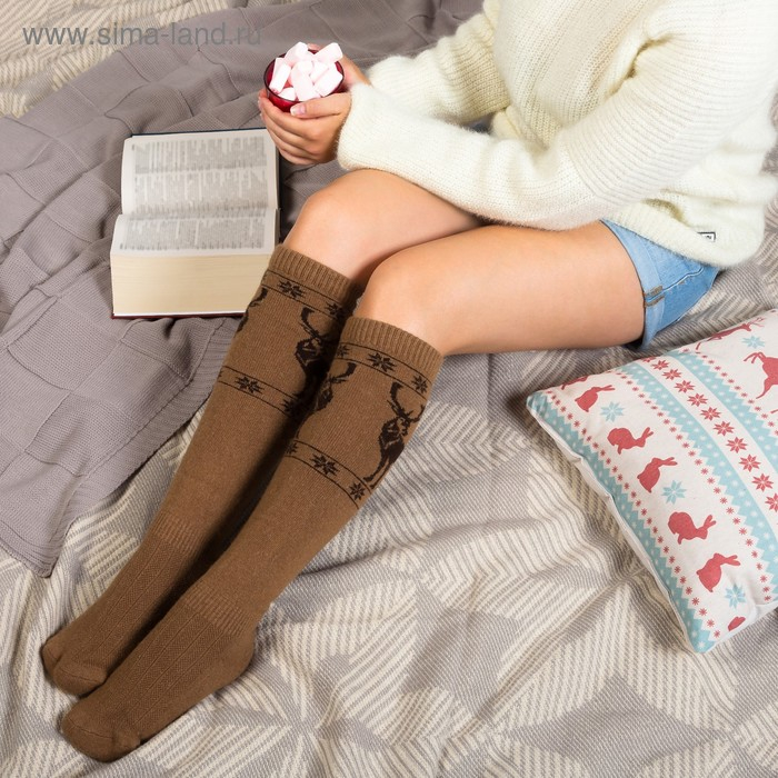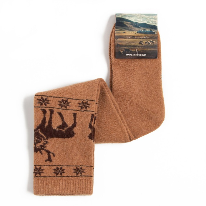 Гольфы женские из монгольской шерсти с рисунком, цвет рыжий, размер 23-25