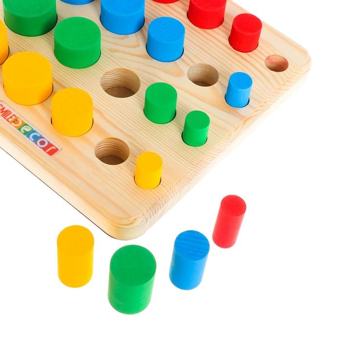 - Мелкой моторики: извлекая и вставляя фигурки, малыш тренирует ловкость и координацию движений пальчиков.