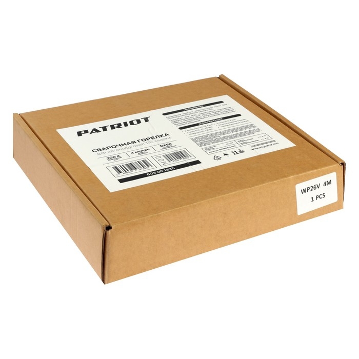 Горелка для аргонодуговой TIG сварки PATRIOT, для аппаратов TIG и MMA, 4 м, 200 А, DX50