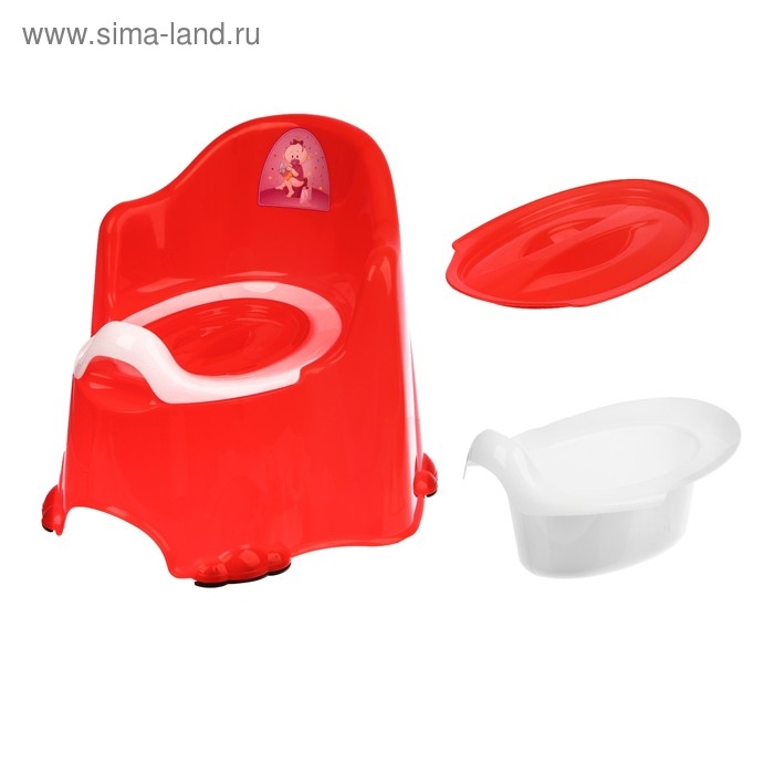 Горшок детский антискользящий «Комфорт» с крышкой, съёмная чаша, цвет красный