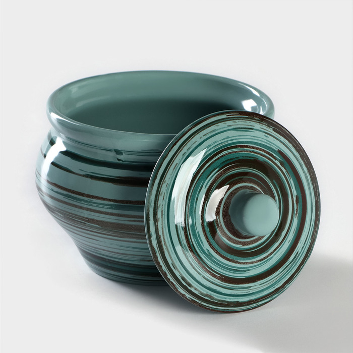 Горшок керамический для запекания №5 с ручками, 0,5л / 10х10,5см, малахит