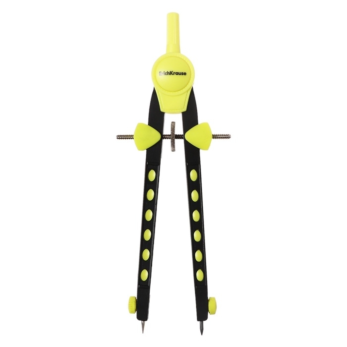 Циркуль металлический, Erich Krause S-Cool, 120 мм, максимальный радиус 18 см, пластиковый чехол с линейкой, европодвес, МИКС