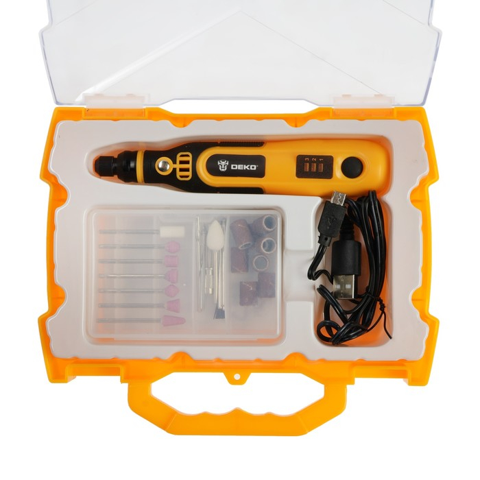 Гравер аккумуляторный DEKO DKRT3.6-Li SET, 3.6 В, 24 аксессуара, цанги 1.6/2,4 мм, кейс